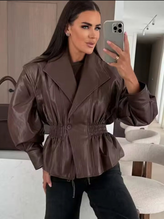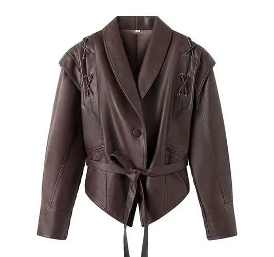 CHAQUETA CUERO CON DETALLE EN LA CINTURA