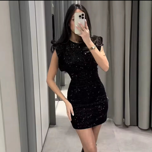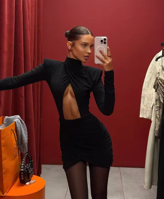VESTIDO NEGRO CON TRANSPARENCIAS