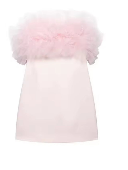 VESTIDO CORTO ROSA VOLANTE DE TUL