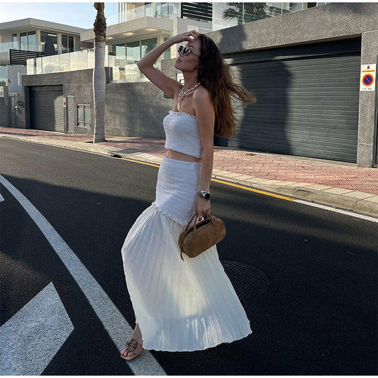 FALDA NIDO DE ABEJA CON DETALLE PLISADO
