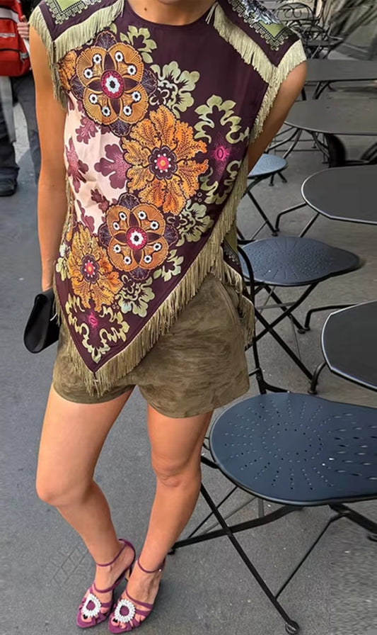 TOP ESTAMPADO BORLAS VINTAGE