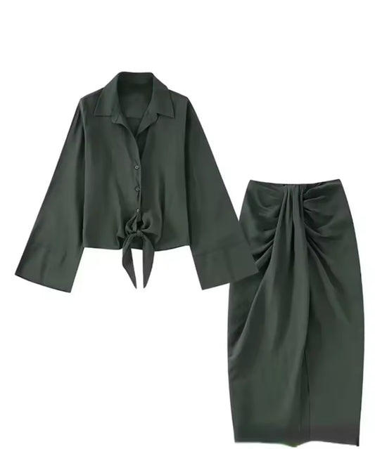 CONJUNTO FLUIDO KAKI CON CINTURÓN