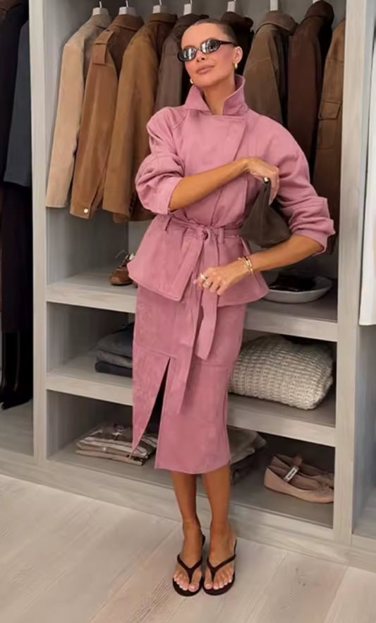 CONJUNTO DE PUNTO CÁRDIGAN Y FALDA