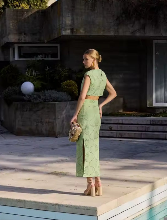 CONJUNTO VERDE CON DETALLE BORDADO