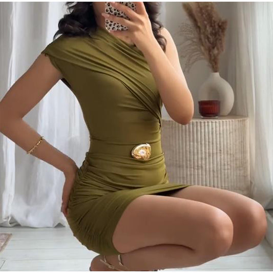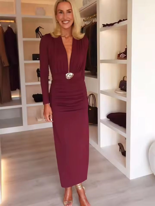 VESTIDO DE GASA PLISADA CON MANGAS FLUIDAS