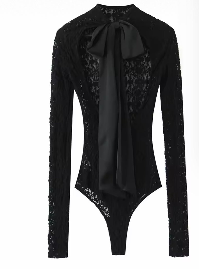 BODY DE ENCAJE CON LAZO SATINADO