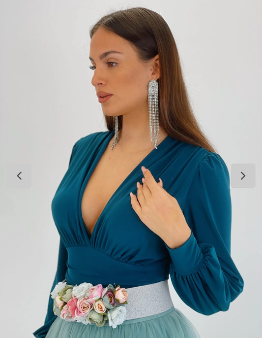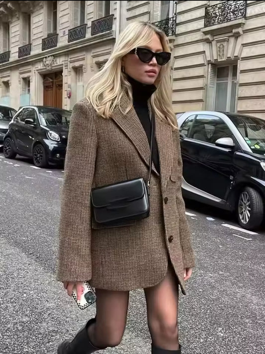 CONJUNTO BLAZER CORTA Y FALDA CON BRILLOS